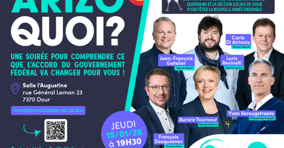 Rejoignez-nous à Dour le jeudi 15 janvier 2026 à 19h30 à la salle l’Augustine.