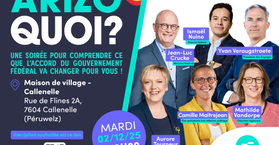 Nous vous invitons à une soirée d’échanges avec Yvan Verougstraete, Président des Engagés et Député européen – Jean-Luc Crucke, Ministre fédéral –Camille Maitrejean Vice-présidente à la réflexion politique – Aurore Tourneur, Députée fédérale – Mathilde Vandorpe, Députée régionale, Ismaël Nuino, Député fédéral.
