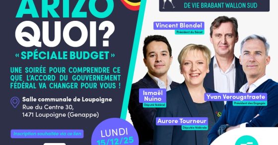 Nous vous invitons à une soirée d’échanges suivie d’un drink convivial avec Yvan Verougstraete, Président des Engagés – Aurore Tourneur, Députée fédérale – Vincent Blondel, Président du Sénat et Ismaël Nuino, Député fédéral.