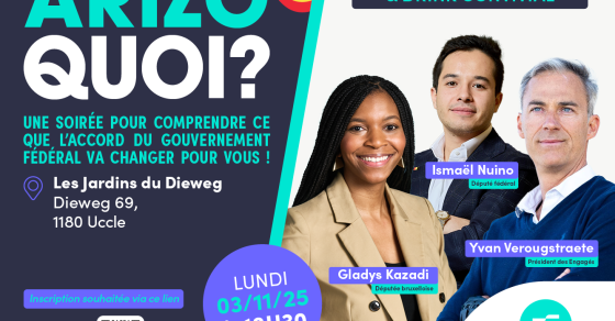 Nous vous invitons à une soirée d’échanges avec Yvan Verougstraete, Président des Engagés et Député européen – Gladys Kazadi, Députée bruxelloise – Ismaël Nuino, Député fédéral.