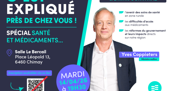 Nous vous invitons à une soirée d’échanges sur la Santé et les médicaments avec Yves Coppieters, Ministre wallon.