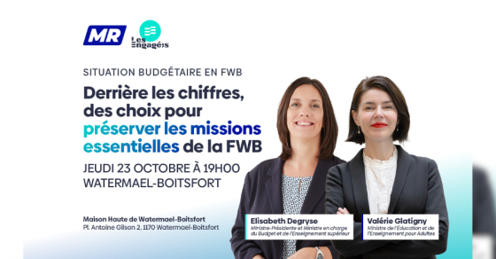 Nous avons le plaisir de vous inviter à une conférence qui abordera deux sujets essentiels : la présentation du budget 2026 de la Fédération Wallonie-Bruxelles et les grands enjeux de l’enseignement obligatoire et supérieur.