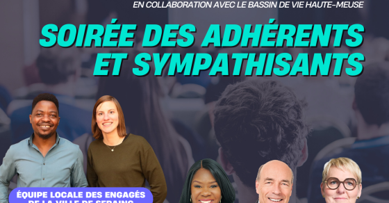 🗓️ Programme « Soirée des adhérents et sympathisants Les Engagés de la Ville de Seraing en collaboration avec l’équipe du Bassin de Vie Haute-Meuse »