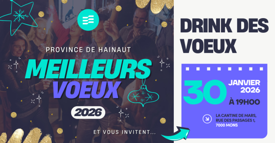 Partager facebook twitter linkedin email Accueil Les actus Agenda Vœux de la Province de Hainaut 30/01/2026 Vœux de la Province de Hainaut La Cantine de Mars - Rue des Passages 1 - 7000 Mons Le 30/01/2026 de 19:00 à 22:30 Plus d’infos à venir